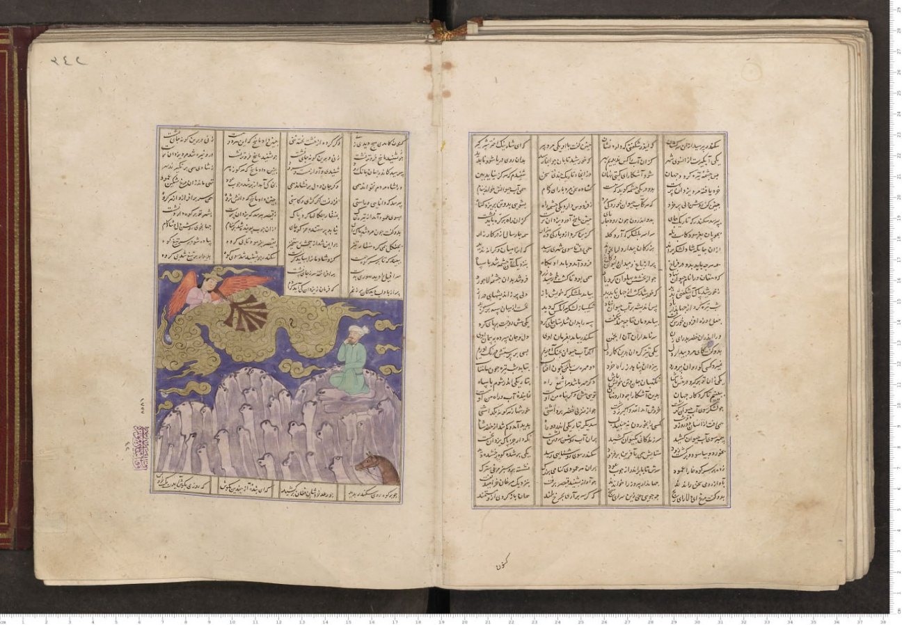 “Shohnoma”dagi Iskandar Maqduniy davriga bag‘ishlangan bob syujetiga ko‘ra, yashil qush shoh Iskandarga jangchilarisiz yolg‘iz o‘zi tog‘ cho‘qqisiga chiqishini buyuradi. Tog‘ tepasida farishta Isrofil (a.s) Iskandarga bu dunyoning istaklari va ne’matlarini unutib, Yaratganning hukmiga tayyor bo‘lishi kerakligiga da’vat qiladi.
